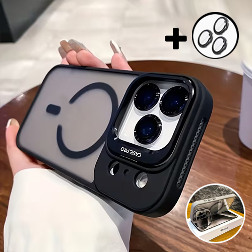 « Noir » Coque iPhone 17 Pro Max Matte Design Support Vidéo + LENS Caméra.